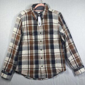 Outerknown Blanket Shirt Mens Medium Brown Blue Plaid Organic Cotton Flannel