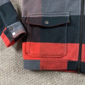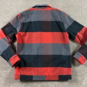 Outerknown Fleece Blanket Shirt Shacket Jacket Men's Small Plaid Red Full Zip