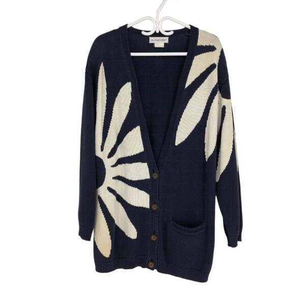 Outlander Navy cream Floral Button Cardigan Oversized Sweater size S