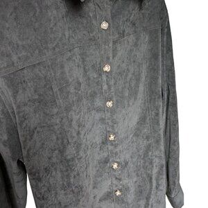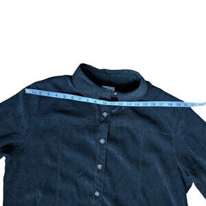 Outline Black Velvet Button Down Long Sleeve Shirt with Brown Buttons Size 16W