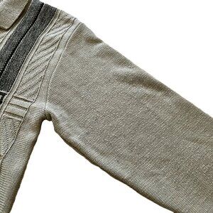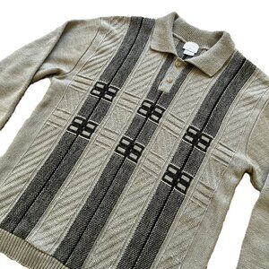 Outline Pullover Polo Sweater Textured Knit Grey/Beige Vintage 90s