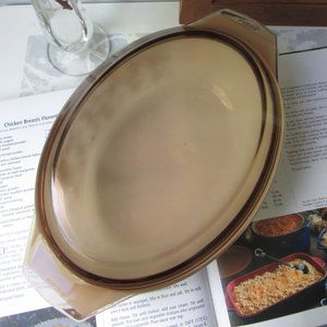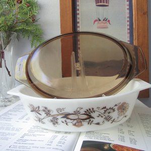 Oval Casserole Dish Brown Vine with Smoky Brown Glass Lid by Pyrex, England