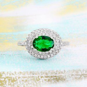 Oval Emerald Green Gemstone Ring, 925 Sterling Silver Charmed Aroma