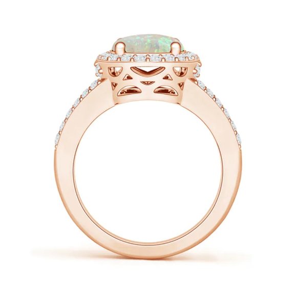 Oval Opal Split Shank Halo Diamond Ring