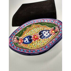 Oval Serving Dish Hand Painted & Signed Ocotlan Pue. Mexico EUC. Wall Hanger