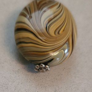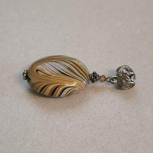 Oval Shaped Beige Pendant with Swirl Detailing