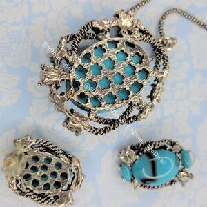Oval Turquoise Color Pendant Necklace with Earrings