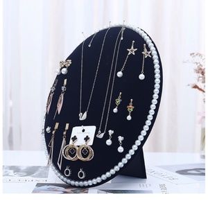 Brand new oval black velvet pearl display easel for jewelry. Easel angle/height adjustable at the back. Hook/tab available for hanging. Thick padded foam and quality velvet for easy pinning your jewelry. Pins not included. Large: 10" W x 12.5" H