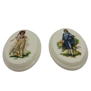 Oval Wall Plaques with Colonial BLUE BOY and Pinky Girl Prints Ceramic Set Of 2
