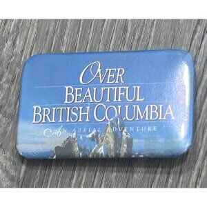 Over Beautiful British Columbia An Ariel Adventure Pinback Button Logo Blue