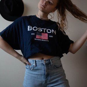 Boston USA oversized tee shirt. Very oversized but can be cropped to get that thick cropped look.