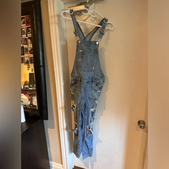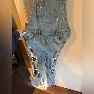 Light washed ripped jean overalls, worn one time and now they don’t fit
