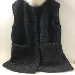 Kaffe make, a Danish brand since 1993. This overcoat is perfect for mix and match, from Elegant to very chic. Has a knitted sheep look and soft feel. No description tag available. High collar and snap buttons. Lined on the inside. Two front pockets. Pet and smoke free environment. Full length: 30.5 inches (taken from bottom of collar to end of garment) underarm to underarm seam is 23 inches
