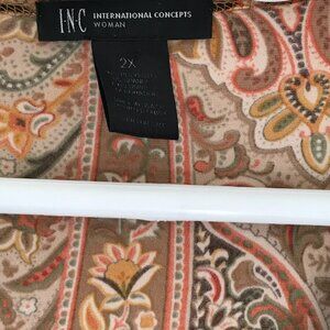 Oversize 2X top/tunic INC brown paisley 3/4 sleeve stretch women's holiday event