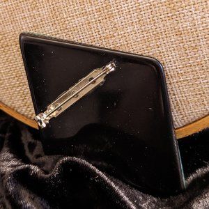Oversize retro vintage brooch black and turquoise diamond-shaped