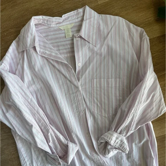 Pink stripe oversized button down shirt