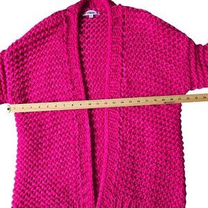 Oversized Pink Chunky Hand Knit Bubble Wool Lantern Sleeves Cardigan. Small