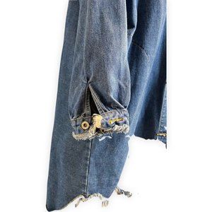 Button Front Extra Long Denim Oversized Shirt Dress/ Jacket With Functioning Chest And Hip Pockets - Size: EU One
