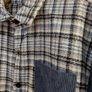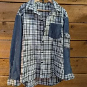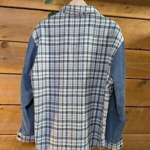 A one-off vintage plaid and denim flannel jacket.