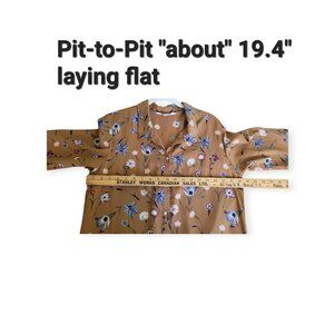 This Dagg & Stacey oversized tan floral housedress is crafted from 100% Polyester and boasts an elegant floral pattern. Perfect for versatile styling, this piece suits both casual and dressy occasions.