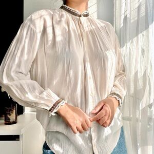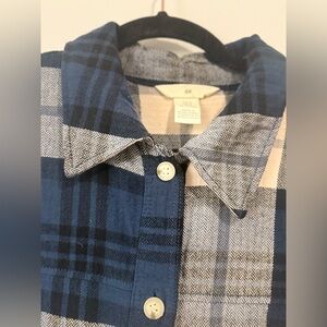 Navy and cream plaid shirt by H&M. Features a classic collar and button front.