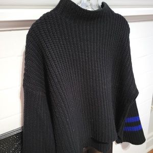 SCRIPTED Oversized Knit Cropped Sweater with Blue Stripe Detail