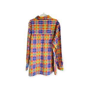 WeWoreWhat Women's oversized plaid shirt in rainbow design offers a classic button-up style with versatility. Excellent used condition with minimal wear.