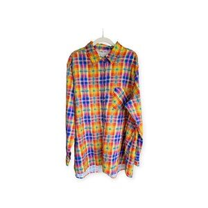 Oversized Rainbow Plaid Button-Up Dad Shirt XL by WeWoreWhat