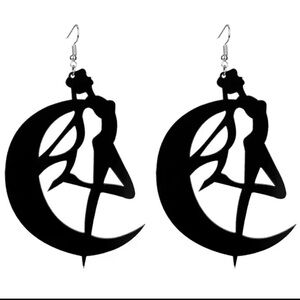 Oversized Sailor Moon Crescent Black Earrings | Kawaii 90s Retro Anime Jewelry