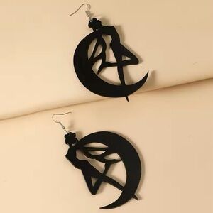 💖Calling all Sailor Moon fans! These oversized black acrylic dangle earrings are a total 90s anime dream. Inspired by Usagi Tsukino’s iconic silhouette, these geek-chic earrings are perfect for cosplay, conventions, or just serving major retro glam vibes.