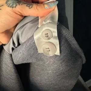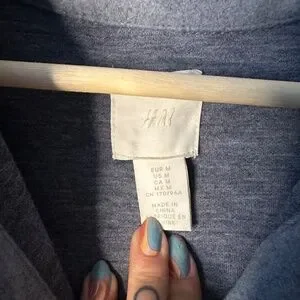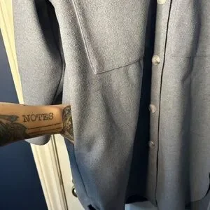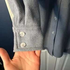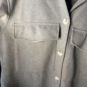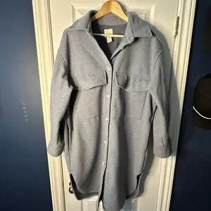 Ladies oversized shirt jacket. Depending on how your eyes see colour, could be grey or light blue.