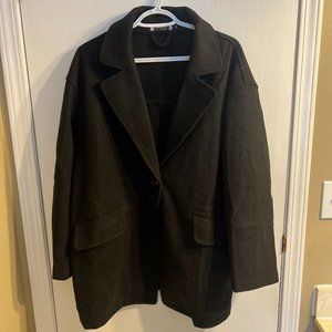 C'est Moi, Oversized Single Button Blazer. Black with brown tortoise button. O/S. Two functional front pockets. Only worn once, great condition. Cotton and polyester blend.