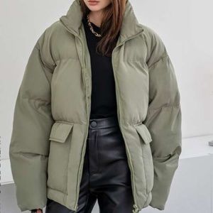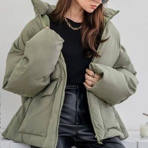 Oversized army green puffer coat (size M)