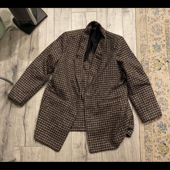 Buttoned, pockets, comfy as heck. Great as an oversized jacket or wear it fitted blazer style