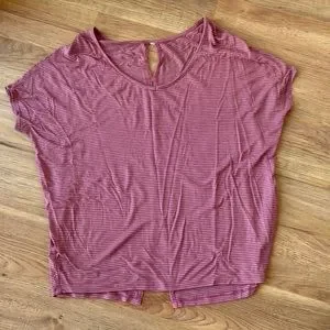 Pink & white striped oversized tee with cute peek-a-boo detail along the back.