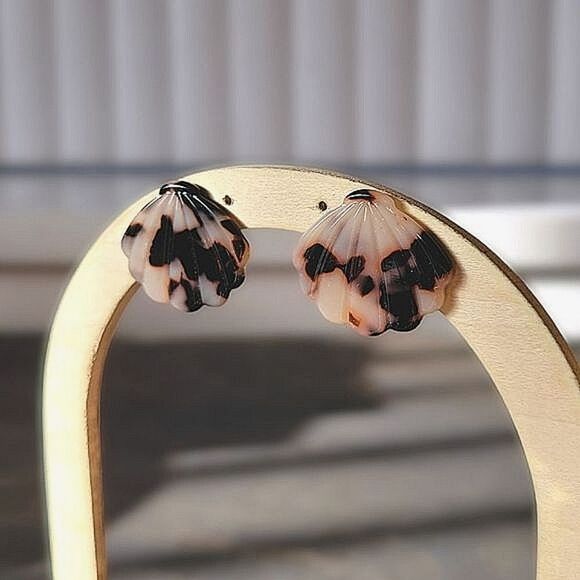 Oversized tortoiseshell acrylic seashell studs