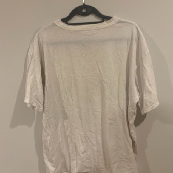 Oversized white t-shirt from American Eagle. Split hem detail on the sides. Raw edge. Good used condition, some discoloration around neck. Also available in green (see other listing).
