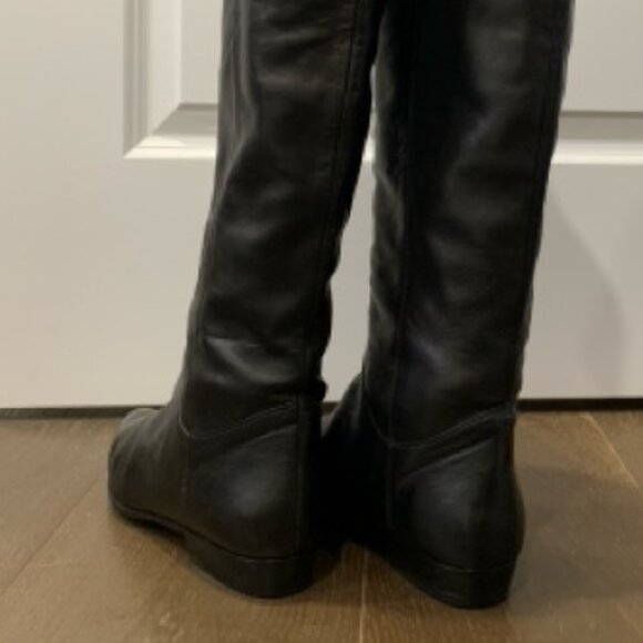 🖤 Over-the-Knee Black Leather Flat Boots — Size 7.5 (Fits Small) 🖤