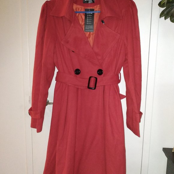 Owind, Double breasted/belt, Red/black buttons and buckle, size XL smaller fit, Polyester, Brand new with tags never worn