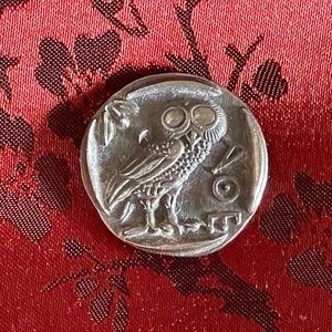 Owl Coin. Greek Talisman. Athena & Owl