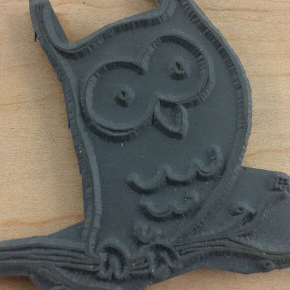 Owl on Branch Tree Magenta Rubber Stamp Wood Made in Canada Great Horned