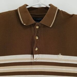 Oxford Short Sleeve Brown Light Grey Stripped Men's 3 Button Size Large Polo