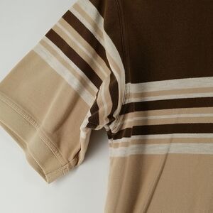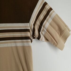 Oxford Polo Men's Large Short Sleeve Tan Brown Light Grey Stripped Golf Office