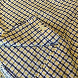 New without tags. 100% cotton - off white background with blue and yellow small plaid pattern. This shirt can be worn loose, tucked in or open as a cover up. Classic style you can't go wrong.