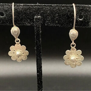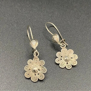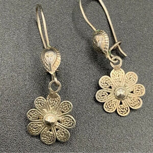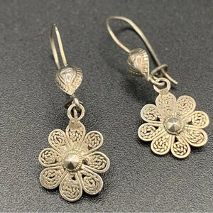 Oxidized Turkish Silver Filigree Floral Artisan Earrings