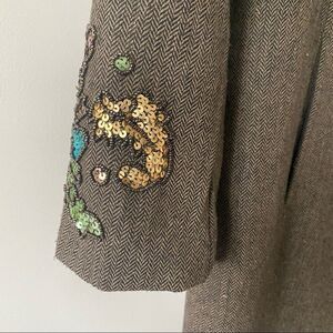 Oxmo-Wool Blend Leaf Sequin Long Sleeve Button Down Lightweight Jacket