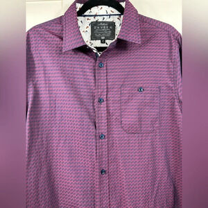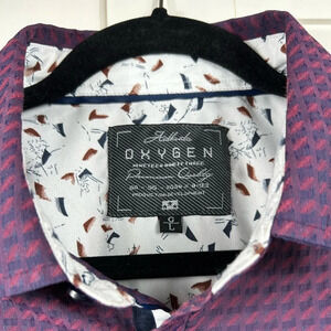 Oxygen long-sleeve button down shirt, L, purple, contrast pattern, Classic Fit