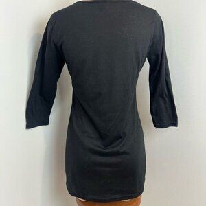 Oze Women’s Medium Psychedelic Bohemian Art to Wear Mini 3/4 Sleeve Dress Black