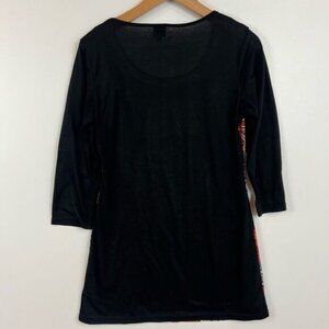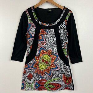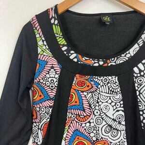 Oze Women’s Medium Psychedelic Bohemian Art to Wear Mini 3/4 Sleeve Dress Black