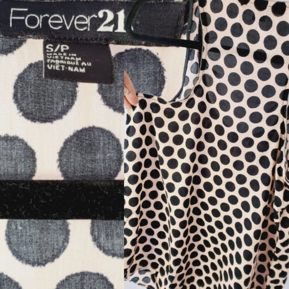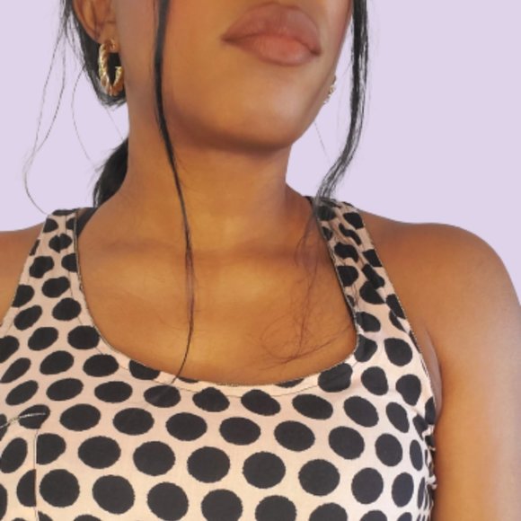 - Pink tank top with black polka dots